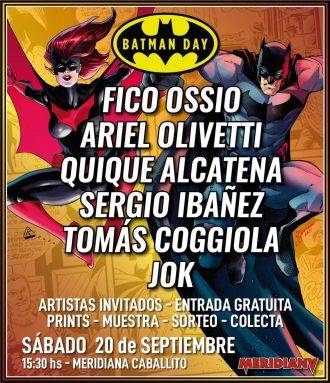 Este sábado 20 en Meridiana (Av. Rivadavia 4963, Local 18, ciudad de Buenos Aires) se festeja el Batman Day, con la presencia de grandes dibujantes y entrada libre y gratuita.