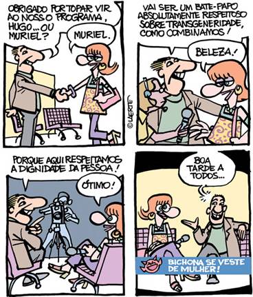 En el marco del festival de cine LGBTIQ Asterisco, que se desarrolla en Buenos Aires por estos días y que lo tiene como uno de sus jurados, Laerte estará brindando un diálogo abierto junto a Maitena, bajo el título “Géneros de la historieta”. Cabe recordar que en 2009, Laerte se dio a conocer como travesti y más tarde asumió su identidad sexual femenina, luego de haber nacido y vivido casi 60 años como hombre.