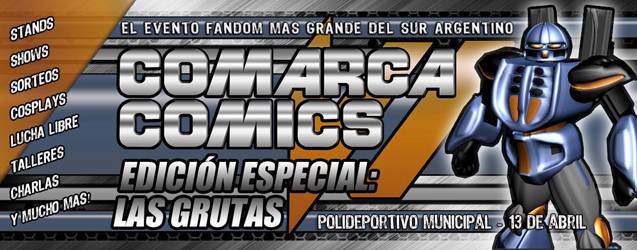Este sábado 13 de Abril a partir de las 14 hs, Comarca Comics realiza una edición especial en Las Grutas (provincia de Río Negro), en el Polideportivo Municipal.