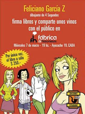 Feliciano está de visita en Argentina y va a estar firmando ejemplares y brindando por la historieta este miércoles en el local de la Fábrica de Historietas, Ayacucho 19 (ciudad de Buenos Aires).