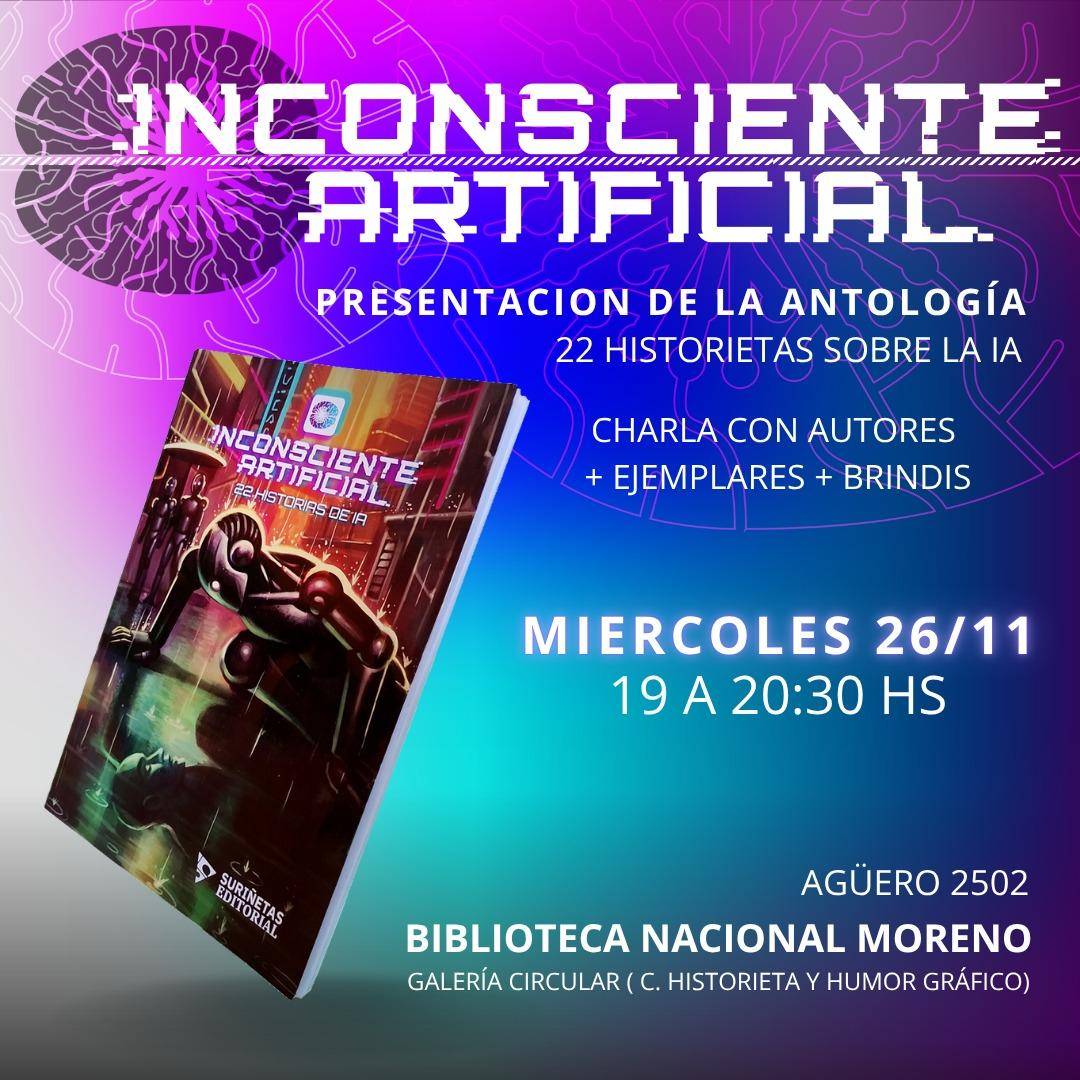 Este miércoles 26 a las 19 hs en el Centro de Historieta y Humor Gráfico de la Biblioteca Nacional (Agüero 2502, ciudad de Buenos Aires) se realizará la presentación de la antología “Inconsciente Artificial”, 22 historietas breves que reflexionan sobre la IA desde la ficción y la narrativa gráfica.