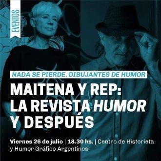 Maitena y Rep, dos mitos vivientes de la historieta y el humor, se juntan en una mesa titulada «La revista Hum@ y después», coordinada por Mara Burkart.