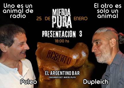 Este sábado 25 de Enero se viene la presentación del libro ’Mierdapura, segunda entrega de la saga de»Roberto, un tipo de mierda», en el bar El Argentino, Chacabuco 3627, ciudad de Mar del Plata.