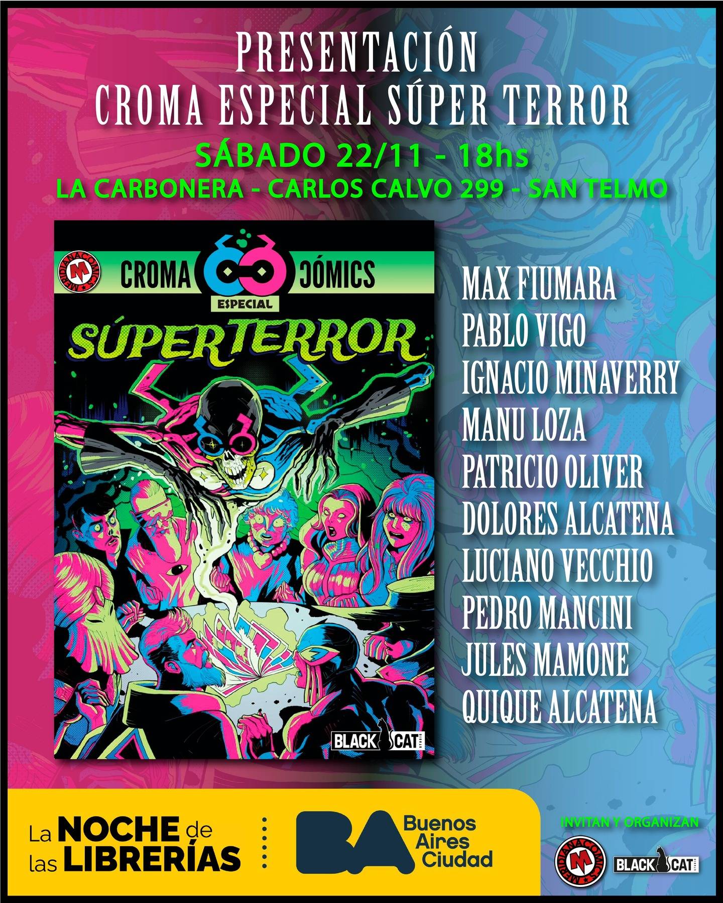 Este sábado 22 a las 18 hs se presenta la antología Croma Especial Súper Terror, recientemente publicada por Black Cat, en La Carbonera (Carlos Calvo 299, ciudad de Buenos Aires).
