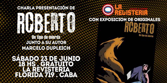 Este sábado 23 a partir de las 18 hs, el local de La Revistería ubicado en pleno microcentro porteño (Florida 719, ciudad de Buenos Aires), será la sede de una nueva presentación del libro Roberto, un tipo de Mierda, junto a su autor, Marcelo Dupleich.