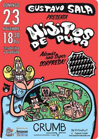 Y también arrancaron las presentaciones del libro, que este domingo 23 de Noviembre, a las 18.30, nos llevarán a la ciudad de La Plata. Como ya es costumbre, Sala brindará una charla y firmará y dibujará ejamplares de su libro, en un encuentro organizado por Crumb, la tienda de comics de la ciudad de las diagonales.