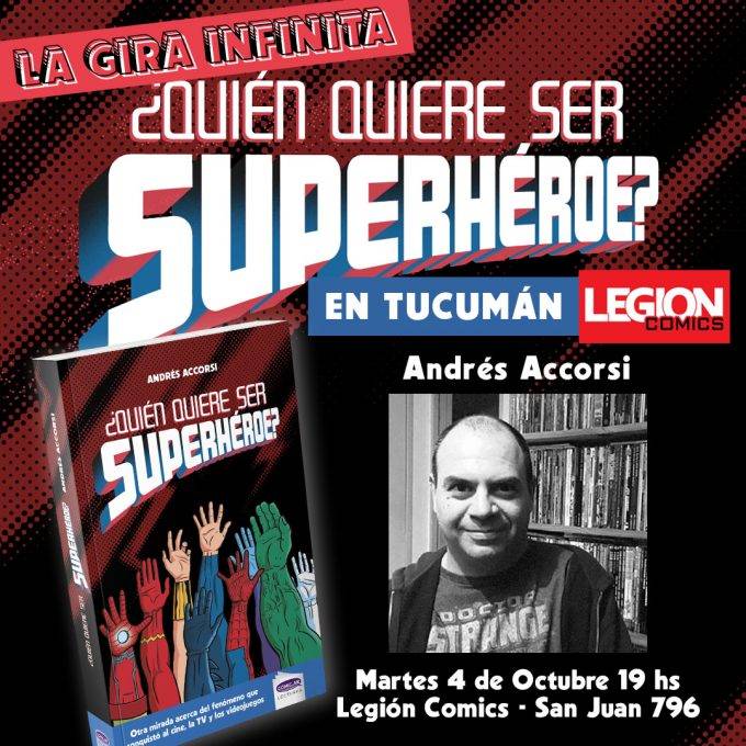 El martes 4 de Octubre a las 19 hs, se presenta en Legión Comics, la gran comiquería de San Miguel de Tucumán, ubicada en San Juan 796. Allí va a conversar con el público, en una charla moderada por Emilio Ladetto, y luego habrá firma de ejemplares. También podrá adquirirse el libro a un precio promocional.