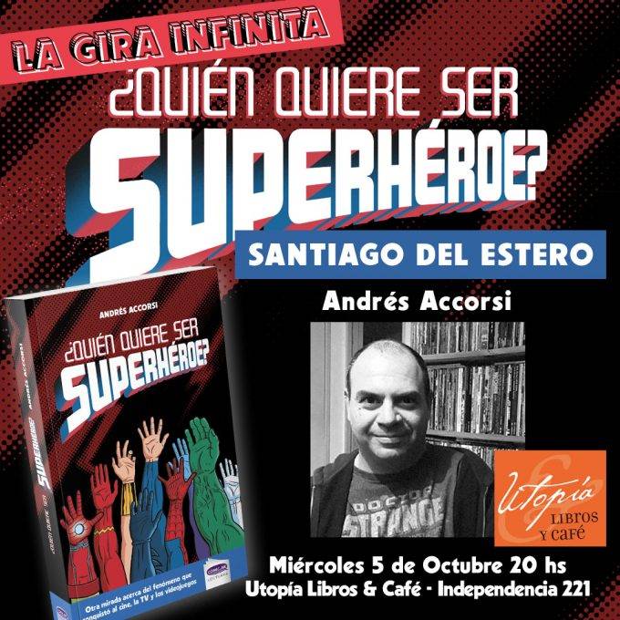 Con la reedición ya en la calle (y vendiendo como pan caliente), Andrés Accorsi retoma la gira de presentación de ¿Quién quiere ser superhéroe?, el libro publicado a fines de 2021 por la editorial Comic.ar.