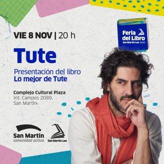 Este viernes 8 de Noviembre a las 20 hs, te podés encontrar con Tute, uno de los grandes humoristas gráficos del país, en la Feria del Libro San Martín Lee. Esto será en el Complejo Cultural Plaza (Intendente Campos 2089, San Martín, provincia de Buenos Aires).