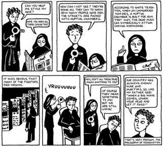 No voy a entrar en mucho detalle ni daré comentarios al respecto como hice anteriormente ya que quisiera que, si algunos lectores no la han leído, pudieran leer la historia de Marjane por sí mismos. Es una historia avasallantemente realista con una calidad gráfica increíble. Recomiendo también la película de animación ya que es muy fiel a la historieta que la gestó.