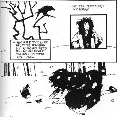 Fue publicada en el número 2 de Vertigo: Winter’s Edge una antología compuestos por historias cortas protagonizadas por los personajes de Vertigo de aquel momento. Esta breve gema presenta en primer plano a Death, la hermana mayor de Sandman, en una historia de tan sólo seis páginas, pero realmente brillante, en la que Gaiman muestra a la protagonista en un momento introspectivo en el que ella sufre de forma muy humana un conflicto que sólo puede tener la muerte misma. Lo maravilloso de ésta historia, es que realmente le creés cada palabra. Llegás a creer, que Gaiman logró descifrar, como «pensaría» o «sentiría» la muerte, si es que la muerte pudiera personificarse. En esas seis cortas páginas, la muerte reflexiona sobre su larga trayectoria, y te transporta básicamente por todos los sentimientos humanos. La frase final es un guiño lleno de ironía, complicidad y humor, y son las palabras más sencillas. Simplemente perfecta.