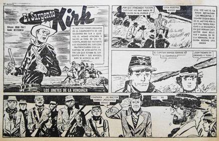La relación que tuve con mi abuelo materno fue siempre lejana. Mis padres se conocieron cuando estudiaban en Santa Fe capital, ambos alejados de sus pueblos natales, y apenas aparecí yo en sus planes se fueron a vivir al Chaco por cuestiones laborales. A mis abuelos los veía una, con suerte dos veces al año, en las fiestas y en alguna otra celebración anual familiar que requiriera un viaje de más de 700 km. Sin saberlo, la colección de revistas de editorial Columba que poseía mi abuelo, a la cual podía acceder solo en estos viajes, fue uno de los primeros chispazos que foguearon mi amor por este medio. Mezcladas con decenas de Tonys, Intervalos y D’Artagnans, se encontraban también unos tomitos con un formato mucho más extraño y que quizás por ese motivo llamaban más mi atención: un grupito de revistas llamadas Misterix, en formato apaisado, donde la historieta misma comenzaba ya desde la portada. Y fue ahí que tuve contacto con este guerrero rebelde de noble corazón que se me figuraba tan radicalmente distinto al resto de los personajes que habitaban las aventuras más “modernas”: un soldado desertor que se cansó de masacrar indios en el Lejano Oeste y se retiró a un rancho, se rodeó de personajes secundarios variopintos y se le plantaba a cualquiera. No entendía muy bien porqué, dada mi corta edad, pero el Sargento Kirk y su pandilla me parecían más reales que cualquier otro personaje que haya leído hasta ese momento. Una lástima, y muchos opinarían que es casi una tragedia, que tras la muerte de mi abuelo la casa fue demolida y yo, a cientos de kilómetros de distancia, nada pude hacer para adueñarme de todo ese invaluable material.