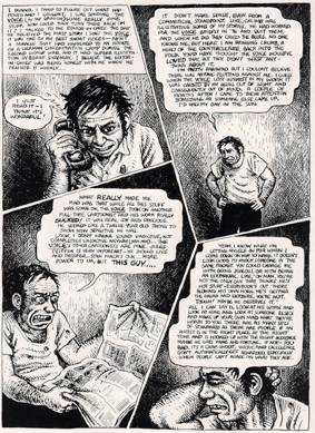 Sin duda alguna, un punto de inflexión en mi vida como lector de historietas fue mi primer contacto con la obra de Harvey Pekar, pero sobre todo con American Splendor. Debo confesar que un tópico que realmente me puede (tanto en este medio como en la literatura, el cine, la televisión e inclusive la música) es la contraposición del american way con la exposición del patetismo de la vida rutinaria del norteamericano promedio, el cual tiene que lidiar con decenas de almas miserables, egoístas, mentirosas y esquizofrénicas, y probablemente haya pocos autores que tengan una mirada más cínica y pesimista que Pekar sobre este asunto. Y pocos dibujantes como Crumb están a la altura del desafío de ilustrar este tipo de aventuras. Nosotros, los argentinos, lo sabemos mejor que nadie: historietas como esta hicieron escuela, lamentablemente, en nuestra región (con un delay de entre dos y tres décadas), y hubo un momento en el cual parecía que nos era imposible encontrar otra cosa que no fueran aburridas historias autobiográficas sin nada interesante que contar, pobremente dibujadas. Pero cuando se trata de Crumb, podemos usar muchos adjetivos para su arte menos “pobre”: su capacidad para acentuar y exagerar características únicas en cada personaje, su habilidad para representar expresividad en los rostros de sus personajes y su eximio manejo de las tintas hacen de su puesta en página un deleite difícil de imitar. Esta historieta es el manual del sarcasmo y el humor negro, es una sátira enorme que no pierde un ápice de vigencia en cada re-lectura y sabe adecuarse a cualquier tiempo. Porque nunca dejamos de estar en crisis, ni nosotros ni ellos.