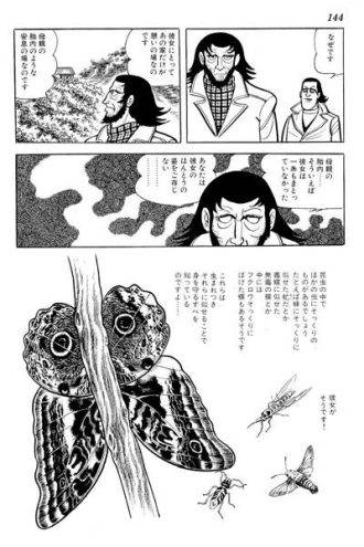 Tezuka no es ajeno a estos acelerados cambios y, al presentarnos a esta femme fatale, recrea tanto el monstruo de la mujer malvada como el de los hombres que tratan de oprimirla. No hay buenos en El libro de los insectos humanos: la sociedad está demasiado corrompida. Tal vez el diseñador Mizuno, a quien Toshiko le robó sus diseños y a quien, a pesar de todo, sigue amando -tal vez porque lo reconoce como el único «puro»- podría ser la única persona de la historia con un código de ética real. Pero las circunstancias son tan siniestras que él también termina convertido en un monstruo.