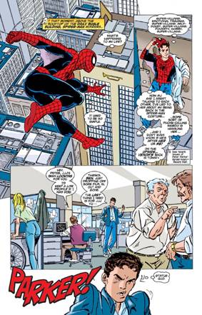 Y como si fuera poco, en esta época Spidey tenia mas de un título, asi que ya para el tercer número la historia continua en la revista Peter Parker. Y ya está, de ahí en adelante número por medio tendremos una saguita de varias partes que interconecta a todos los títulos arácnidos y tratar de seguir sólo esta serie para hablar de Byrne se vuelve imposible, molesto… y para peor las otras revistas no son mucho mejores. Pero más o menos tratamos de pilotearlo, de sobrevivir y llegar al último número del devaluado maestro, para darnos cuenta que el infame de Mackie sigue por un buen rato más, que lo peor de sus historias crecen y se prolongan en el tiempo, para hacer de esta etapa de Spider-Man una de las mas olvidables de toda su historia. Por suerte después de este aborto historietistico vendría J.M. Straczynski, pero eso es material de otra nota.