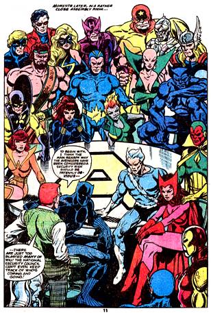En estas aventuras los miembros son el Capi, Iron Man, Beast, Wonder Man, Jocasta, Wasp, Yellow Jacket y el siempre interesante duo de Wanda y Pietro, una formación clásica y genial de Avengers. Byrne es un maestro de las escenas de flashbacks y los n°s 185-187 narran una aventura con los Avengers por un lado, Mordred por el otro, con secuencias que trasncurren en distintas épocas, algo muy bien aprovechado por los coloristas. Además, acá se ven los primeros flipeos de Wanda como heroína inestable/futura villana. Hay cotidianeidad de almuerzos, conversaciones descontracturadas, la presencia de Falcon y Ms. Marvel, las roscas con Gyrich… Chicos, ¡esto es la vida!