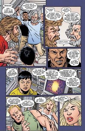 En cuanto al dibujo, acá el maestro se deja la vida, no roba ni un poco, hace fondos en casi todos los cuadritos, dibuja naves, selva, ciudades destruídas, de todo un poco y en cada número deja la vida. Esto creo que ya lo dije varias veces, pero los que dábamos por acabada la carrera de Byrne como dibujante le pifiamos muy feo. Casi toda su obra en IDW demuestra que el tipo parece tener las bolas al plato de Marvel y DC y en los últimos años, cuando lo llaman estas compañías que le dieron de comer durante tanto tiempo, siempre se tira a chanta y cumple con lo mínimo, porque uno ve este laburo y parece que no se tratara de la misma época en su carrera, y es incluso un poco posterior a su etapa más abominable en DC.