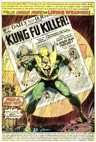 Las aventuras de Iron Fist cuentan las andanzas de Danny Rand en su identidad superheroica. Influenciado por la película Lost Horizon y la serie Kung-Fu, Roy Thomas y Gil Kane crean el origen en el que Wendell Rand (padre de Danny) va en búsqueda de su propio Shangri-La, llevando a su esposa e hijo en sus aventuras. Randy Meachum, socio y parte de la expedición, mata a Wendell y abandona a la esposa e hijo del multimillonario. Danny sobrevive al frío de la montaña y encuentra el puente hacia la mística ciudad de K’un-lun donde es criado y entrenado hasta su madurez para convertirse en un arma viva: El Puño de Hierro! Cuando Daniel termina su entrenamiento y regresa a Occidente, recupera la empresa que fue de su padre y comienza una vida de superhéroe.