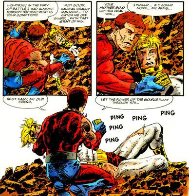 Con el objetivo de agitar la llegada del ídolo, la editorial puso su primer número a 99 centavos de dólar y cerró los títulos de Mister Miracle y Takion para garantizarle a John un control exclusivo de la fauna neodivina. El n°15 de la serie servitía como bisagra entre el final de la mencionada colección y un nuevo génesis editorial: Jack Kirby’s Fourth World (o JK4W de ahora en más) con su n°1 fechado en marzo de 1997.