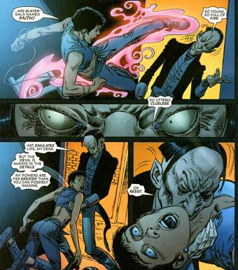 Si hay algo que se nota durante toda la saga es que la dupla no se lleva nada bien con la actual narrativa descomprimida, por eso es que a la amenaza vampirica se le suma la aventura de Atom en el universo microscópico y el encuentro de la Liga con la Doom Patro (sumado a todo lo referente a este grupo que ya mencioné). Estos recursos sirven para mantener la historia durante los 6 números que dura, que tranquilamente sin tanta cosa podrían haber sido la mitad. A diferencia de los comics de los últimos tiempos, en cada número pasan muchísimas cosas y terminamos con una saga hipercargada al pedo, porque la realidad es que no daba para tanto. Si en lugar de tratar de chorearnos para después sacar el TP, DC nos hubiera entregado dos numeritos de la dupla, por ahí serian de esos para recordar, que uno atesora como rarezas dentro de una colección, pero por desgracia terminó en una saga estirada y para el olvido.