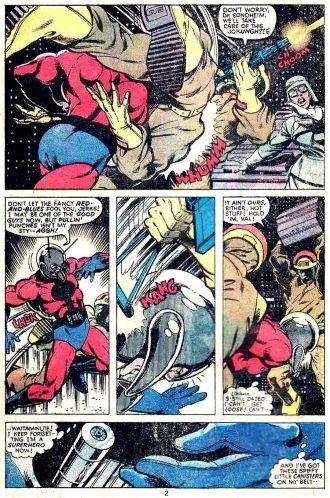 De esta manera, bajo las ordenes de Quasar (que es el jefe de seguridad), The Thing trata de de desentrañar un plot que demuestra que Pegasus tiene más agujeros que un queso gruyere, y mucha de la gente que trabaja allí son espías. Toda la saga es escrita por Ralph Macchio, a quien se le suma en desde el nº 54 Mark Gruenwald. Diría que por desgracia solo la mitad de la saga esta dibujada por el maestro, que abandona en el nº 55, para irse a dibujar los Fantastic Four con guiones de un viejo conocido, Marv Wolfman. Pero es remplazado por alguien que unos años después verá su nombre muy vinculado al de Wolfman, nada menos que George Perez, que se hace cargo de la faz grafica entre los nº s 56 y 58. Por ahí lo más relevante de esta saga es la transformación de Wundarr en el Aquarian y cómo pasa de ser una especie de pseudo-Superman a un Jesús Cósmico.