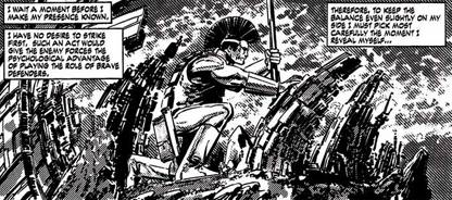 Página tras página, vemos al campeón de la cresta reflexionar sobre el status quo imperante, sobre su razón de ser, su relación con otros humanos y así hasta llegar a la victoria sobre el enemigo, al que ejecuta con una simpleza pasmosa al descubrir que el villano no es más que un viejo decrepito que hace parecer a Carlos Fayt como un gimnasta olímpico. En eso aparecen los agentes a GPA para revelarle a OMAC la existencia de una máquina del tiempo que le permitió a Mr. Big escapar por el tiempo lo que produjo modificaciones en la línea temporal, y que la realidad en que se encuentra es una consecuencias de esos actos y ahora el alter ego de Buddy deberá ir al pasado a evitar que multimillonario garca modifique nuevamente la realidad a gusto y paladar.