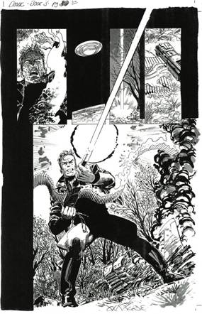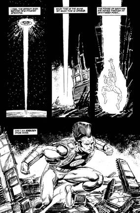 Gráficamente la miniserie también va de mayor a menor. Empieza con una página devastadora en todo el sentido de la palabra, y para el final de la historia se nota un poquitín de desgano. Suma por todos lados la variedad de ambientaciones que tiene el relato por lo que se puede apreciar el inmenso talento del anglo-canadiense a la hora de plasmar con su estilo todo tipo de armamentos, vestimentas, vehículos, ciudades, pelos (desde clásicos hasta esos raros peinados nuevos) y un largo etcétera, así como de evocar el estilo compositivo kirbyano cuando reproduce algunas viñetas y diseños personajes a lo largo de casi doscientas páginas en blanco, negro y grises, aplicados con las tramas mecánicas que Byrne manejaba como nadie.