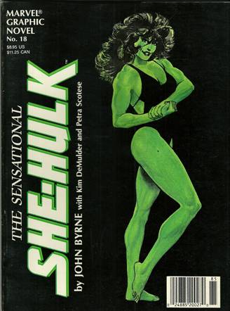 La novela gráfica The Sensational She-Hulk salió en Noviembre de 1985. Escrita e ilustrada por Byrne, ya se notaba distinta. El ´85 y el ´86 fueron años increíblemente creativos para el medio. Muchos vieron el potencial de esa novela gráfica pero esos años no eran los ideales para profundizar tanta vanguardia. Sin embargo, Byrne tendría su revancha cuatro años más tarde, cuando Mark Gruenwald le pidió desarrollar una serie regular con el personaje de la Amazona Esmeralda. El guionista, y entonces editor, le pidió a Byrne que siguiera con la línea que había comenzado con la novela gráfica en 1985 y que se alejara de la serie anterior (Savage She-Hulk). Byrne venía de romperla con X-Men, Fantastic Four, Superman y tenía ganas de probar suerte con personajes menos tradicionales del medio. Por eso aceptó el desafío de Gruenwald (y años más tarde seguiría esa exploración con sus Next-Men y con un Namor C.E.O y sin alitas) y la serie The Sensational She-Hulk se convirtió en una realidad.