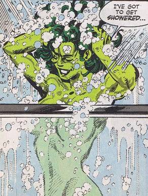 El abordaje de Byrne era completamente cómico y que She-Hulk supiese que era un personaje, y rompiese la mencionada cuarta pared, era un delicioso disparate (muuucho antes que Deadpool lo hiciese, niñatos). El título de a poco se convirtió en un circo delirante donde el artista hacía lo que quería con el personaje, al punto tal de pasarle facturas personales a gran parte del medio mediante las aventuras de Jennifer Walters.