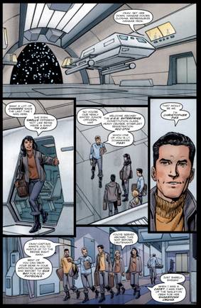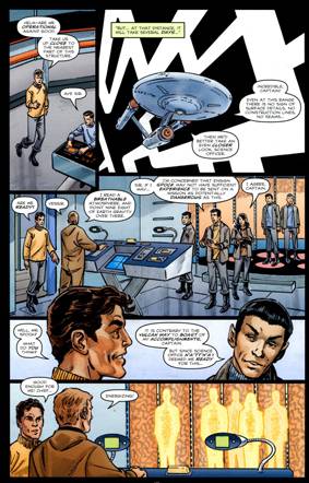 El tercer capítulo es genial. Ahí vemos cómo Byrne entiende el universo Trek clásico a la perfección ejecutando un capitulo que tranquilamente podría ser parte de la serie original. Incluso el dibujo acompaña de manera magistral: todo lo que Byrne plasma nos recuerda a los decorados de la clásica. Y el argumento, tiene muchísimos condimentos de cuento clásico de ciencia-ficción que tanto abundaban en Star Trek. Una delicia.