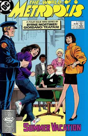 El broche de oro de la tanda nos lleva a Metropolis, la ciudad más importante del mundo, y acá una vez más el dibujo atenta contra las buenas costumbres de la mano de un para nada inspirado Win Mortimer, veterano dibujante de Superman para esta época muy entrado en años, al que no sacan del pozo ni las tintas de Dick Giordano. Los guiones de Byrne son un poco más divertidos, y mantienen la fórmula de un personaje en el presente que rememora alguna historia pasada. Lo más atarctivo es que cada número está dedicado a una persona distinta. Así vemos cómo Perry White se convierte en el Editor en Jefe del Planet en el primer capítulo, cómo una precoz Lois consigue su primer trabajo en el diario con sólo 15 años, cómo fueron los primeros años de Clark en Smallville antes de salir a la luz como Superman, y finalmente el origen del famoso reloj de señales de Jimmy Olsen. La verdad es que todas las hsitorias son divertidas, encajan muy bien dentro de la continuidad de lo que pasaba en los títulos del kryptoniano por aquella época, y tengo que decir que disfruté bastante de su relectura actual.
