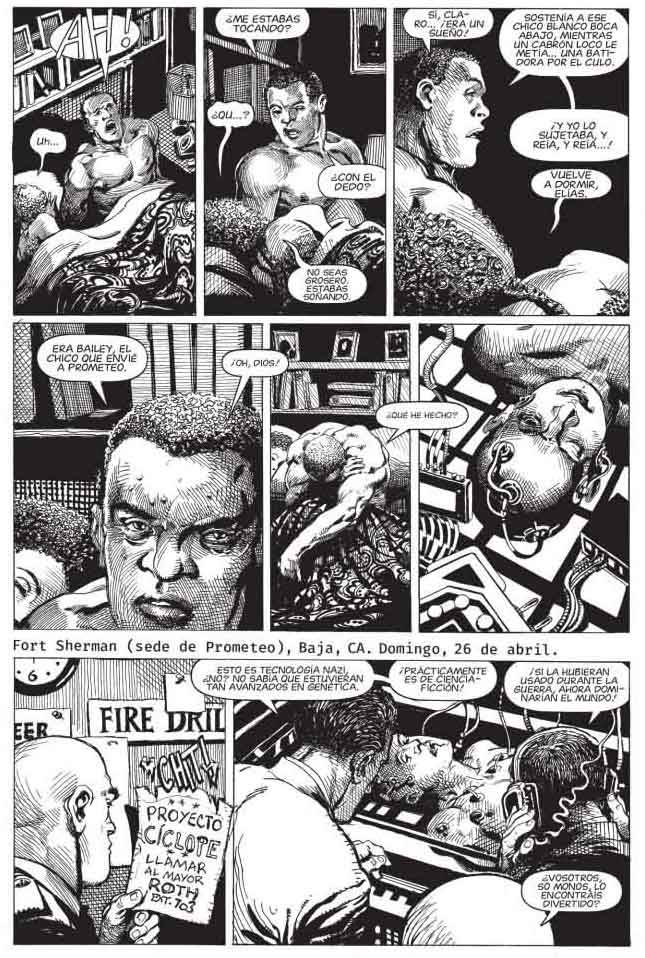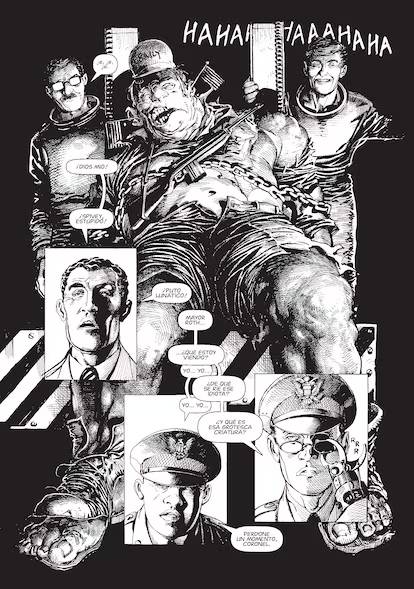 Los grandes horrores e injusticias suelen ser las que tienen la mayor cantidad de cómplices pasivos: El Sargento McFarland es el tipo que sabía y no actuó, porque cuando el sistema te da instrucciones y vos las seguís sin pensar en si hacés lo correcto, sos parte fundamental de su maquinaria. Los sistemas que generan horrores como el Proyecto Prometeo (algo falso en la novela gráfica, pero existen cientos de casos reales o metáforas de ellos, como en V de Vendetta) no se sostienen sobre el trabajo de los monstruos. Se sostienen sobre el trabajo de los cómplices: gente que intuye el horror, pero que lo racionaliza con oximorones elegantes como "provocar daño controlado para salvar más vidas", "hacer la guerra para alcanzar la paz" o las más infames: “lo hice porque era mi trabajo” y “así me lo ordenaron”. Frases que son patéticas cortinas de humo para tapar las responsabilidades sobre las horribles consecuencias que generan las posturas más extremistas del avance técnico-científico.
