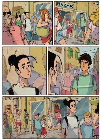 Me resulta muy tentador decir que la responsable de la sensibilidad brutal que se refleja en la historia sea de la guionista Assia Petricelli, entendiendo sensibilidad no como una telenovela turca que haga lagrimear a viejas que pasean por las joyerías de Recoleta, sino como la percepción perfecta de cualquier microgesto, cambio repentino del sentir o el lograr ponerse en la piel y la mente de alguien completamente diferente a nosotros. Pero sería increíblemente injusto con Sergio Riccardi, porque entre los colores cálidos y sus líneas no simples sino más bien sintéticas y evocadoras, inundan cada página de nostalgia y euforia, esa que solo se siente en los primeros amores. Esta historia escrita y dibujada por gente cuya realidad queda tan lejos de nosotros, pero que pareciera que nos conociera desde chiquitos, es una herramienta enorme para quienes buscamos ese elemento de universalidad en la humanidad.