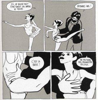Es cierto que la figura paternal y maternal juegan su rol en esta novela gráfica, pero en palabras de Carl Rogers, el verdadero aprendizaje surge en un ambiente de confianza y respeto mutuo, y esa es la dinámica continua entre ellos dos. ¿Bojinski maltrata psicológicamente a Polina? Es debatible, depende mucho de tu visión de la realidad, de tu edad o de tu género para determinar tu respuesta, pero si de algo no hay dudas es que el respeto y el cariño profesional entre ellos empapa a toda la obra. Los conflictos entre ellos van a estar presentes, como lo están en cualquier relación con tanta intimidad como cualquiera que te haga progresar, y el punto de quiebre que nos pone el autor se encuentra cuando Polina se enfrenta a un momento bisagra: seguir el camino marcado por su maestro de toda la vida, o encontrar su propio estilo, su propia forma de expresarse, su propia voz artística.