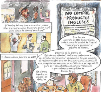 “En la escuela nos hablaban de los soldados de Malvinas como héroes míticos que habían dejado sus vidas en las islas. Pero en la calle era distinto, se los veía enojados y tristes, vendiendo en la calle para juntar unos pesos… ¿Cómo los héroes iban a necesitar vender rifas o lapiceras en el tren para poder vivir? ¿Qué clase de héroes eran?»