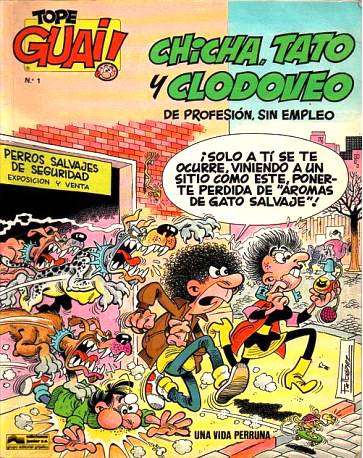 El cambio fue absoluto: de dos protagónicos pasamos a tres, de protagonistas adultos pasamos a jóvenes y de aventuras más limadas, o más fantasiosas, pasamos a unas que incorporaban de modo más explícito la actualidad española. Así, en 1986 Grijalbo lanza la revista Guai!, donde debutan los personajes, y luego recopila el material publicado en los nºs 1 al 8 del semanario en el Vol.1 de la colección Tope Guai!, el primer álbum dedicado a Chicha, Tato y Clodoveo, titulado «Una vida perruna».