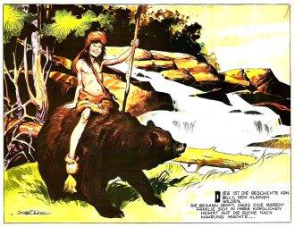 En 1975 no había grandes antologías en España, ni apuntadas a los adultos ni apuntadas al público infanto-juvenil. En ese panorama desértico, los autores españoles trabajaban básicamente para los mercados de Estados Unidos, Inglaterra, Alemania, Holanda… y casi todos realizaban una producción bastante adocenada, sin rasgos muy sobresalientes en los guiones, que eran bastante genéricos. El Pequeño Salvaje es hijo de ese contexto, y tiene su primera edición (también en 1975) en la editorial alemana Williams-Verlag, con sede en Hamburgo. Felizmente, el maestro José Ortiz encontró quién se la publicara en su país casi en simultáneo.