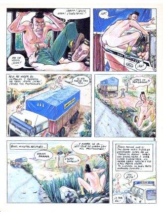 Yo intuyo que la escasa regularidad de Boldú tiene que ver no con la velocidad a la que dibujaba, sino con el tiempo que le tomaba colorear las historietas. Mario Gamma debuta en una historia de cuatro páginas en blanco y negro, pero al toque se empieza a publicar a todo color… y ahí es donde saca la diferencia. Las historias pueden ser básicas, groseras, obvias, poco inspiradas, machirulas, lo que quieras. Pero el tratamiento del color que propone Boldú, con una mezcla exquisita y puntillosa entre tintas, lápices, acrílicos y acuarelas, hace que Mario Gamma «el Griego» resulte visualmente irresistible, y a la vez hace razonable que el autor se tomara bastante tiempo entre una entrega y la siguiente.
