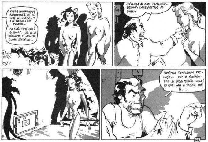 Probablemente en 1987-88 se hablara poco de la trata de personas y nada de la violencia de género. Pero ahí es donde Antonio Segura se propone indagar a lo largo de esta serie. Ya en el primer episodio (que incluye un glorioso homenaje a Spirou y un argentino garca) Ana y Berta, dos amigas que están dando sus primeros pasos en el mundo del modelaje, son engatusadas por un diseñador de indumentaria que las droga. Una vez que están desmayadas, este hijo de puta se las entrega a una red criminal de trata de personas liderada por el siniestro «Libanés», como parte de pago de una deuda millonaria.