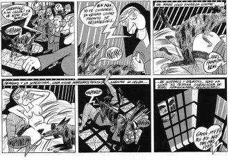 El dibujo de Cifré, además de ser impactante, es algo difícil de desvincular de las cosas que narra en sus historias. Que son básicamente secuencias donde las cosas se rompen, estallan, se transforman o se degluten unas a otras. La más «tradicional» debe ser «Venganza», tres páginas de 12 cuadros cada una protagonizadas por un perro que se mete en un convento lleno de monjas y se las empoma a todas.