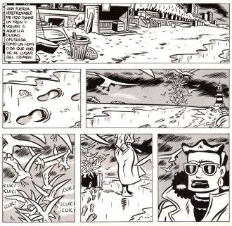 En cuanto a la faz gráfica, Francesc Infante se muestra como un dibujante sumamente sólido, enrolado en el estilo atómico o la línea clara posmoderna. No es fácil diferenciarlo de Michael Cherkas, por citar al referente de este estilo que más rasgos comparte con Infante. El autor suple la falta de color con un claroscuro fuerte, muy pensado, sumado a un excelente trabajo en la aplicación de grises, logrados con tramas mecánicas. De todos modos, siempre lo más llamativo es el trazo vigoroso y versátil del pincel, esa línea negra desbordante de plasticidad y elegancia que por momentos me recordó a Yves Chaland.