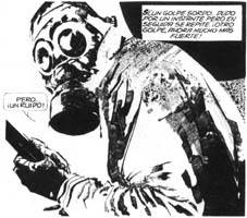 ¿Qué versión está mejor? ¿La original, o la “combativa”? La primera es perfecta, redonda, con Solano López a un gran nivel. Introducción, nudo, desenlace. Con bajada de línea, sí, pero no tan frontal. La versión brecciana es otra cosa absolutamente. Desde lo visual, es una explosión apabullante: quizás lo más recordado sea aquel dibujo de Juan Salvo con máscara mirando a cámara, con la máscara puesta, sorprendido por algo o alguien agazapado en algún lugar. Desde lo argumental, todo se vuelve casi un panfleto, interesantísimo, sí, pero hecho para otro público, con otro fin.