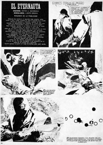 Cuando leés el Eternauta por primera vez, y sos un pibe que creció en los´80, la primera reacción es la de tener en tus manos algo trascendente, importante, que supo volverse mítico y atravesar las eras enfundado en un cono de grandeza. Conseguí mi primer ejemplar en una comiquería que ya no existe, a un precio irrisorio: tapa dura, apaisada, voluminosa. La historia me fascinó, ambientada en Buenos Aires (algo no tan común para la época), llena de localismos y de idiosincrasias bien nuestras. Con los Manos, los Gurbos, Salvo, Favalli, todo el elenco. Una aventura grandilocuente, que termina mal, por cierto, y que te deja con un sabor amargo pero lleno de cierta cualidad de rebelión eterna que emana de cada acto heroico de estos hombres, comunes, en circunstancias extraordinarias. De pibe, como dije, la vi como una gran aventura, y se me escapaban las otras capas de sentido que la historia, aún en su primer volumen, comenzaba a delinear.