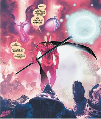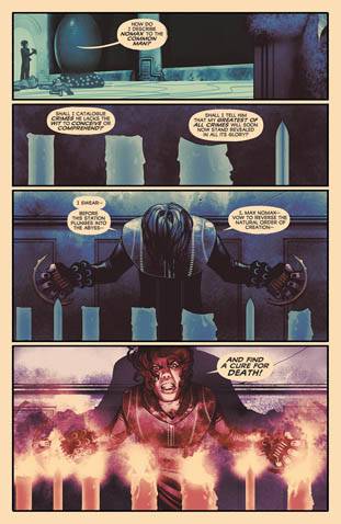 Ese es el puntapié inicial de la historia que plantea el escocés, y que plasma visualmente el inefable Frazer Irving. Un tipo de un talento cósmico… encuentro difícil expresarlo de otra manera. Su estilo extraño, su forma de pintar, la paleta de colores… todo lo hace perfecto para el libro. Si leíste lo que ambos hicieron en Batman y te gustó, esto te va a implosionar el cerebro. En cada página estallan estrellas, revientan colores, detonan sensaciones, disparan luces en todo sentido, te seduce, te enamora, te lleva a un punto de antes y después. Está buenísimo, bah…