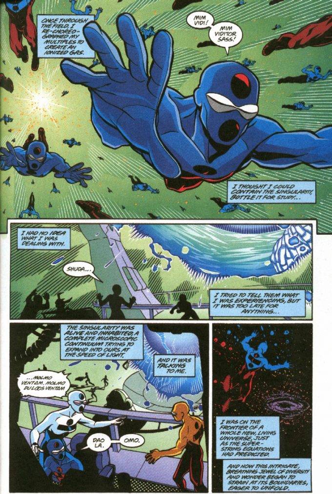 Aún así las ventas fueron más que dignas, y en 1999, cuando a DC le empezó a ir bien con la línea de las antologías de 80 páginas, se decidió volver al mundo del One Million con un especial integrado por varias historias cortas. Allí Grant Morrison forma equipo con el gran Cully Hamner (por fin un dibujante grosso) para narrar en poquitas paginas el origen del Atom de la Justice Legion A. Probablemente esto sea lo mejor que escribió el escocés vinculado al mundo del One Million, porque es una historia cortita, concisa, que no renuncia ni a la ambición ni al delirio típicos de nuestro guionista estrella, pero que no se cuelga en boludeces. Va al grano y resuelve con jerarquía y eficacia una historia… que a la larga no tendrá ninguna importancia, porque estos personajes no van a aparecer más, hasta que muchos años después Scott Snyder les va a dar un pequeño rol en una saga hiper-limada de la Justice League.