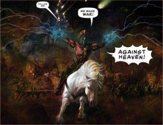 Eden´s End nos lleva a los albores de la humanidad, donde Adaman (una especie de proto-superhéroe) confronta con el científico alienígena Ha-Shatan (que vendría a ser Satanás) y su aprendiz, Lilitu (que vendría a ser Lilith). O sea que la historia consiste en, básicamente, darle una vuelta de tuerca para el lado de la ciencia ficción y la machaca superheroica a mitos religiosos que tienen que ver con la creación de la Humanidad, la manzana prohibida, el hombre que le roba el fuego a los dioses y demás. Una historia de corrupción, rebeldía y poder, que mezcla las teorías conspirativas con elementos de la tradición griega, judeo-cristiana y mesopotámica y por supuesto con el origen de un personaje mitad Conan/ mitad Superman, claramente orientado a la violencia y la acción descontrolada.