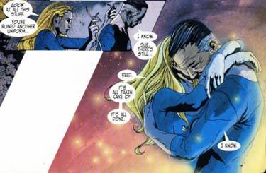 Además de la Primera Familia de Marvel, en este festejo de los 50 años aparecen otros personajes indispensables. El 5 sería el Doctor Doom, el 6 Namor, el 7 el Hombre Topo y el 8 Alicia Masters. No le den pelota a mi asignación numérica, es una simple manera de mencionarlos. Casi todas estas apariciones tienen poca relevancia, son casi excusas que imagina Morrison para ponerlos en el juego. Y los grandes ausentes son los pequeños Valeria y Franklin, los hijos de Sue y Reed Richards.