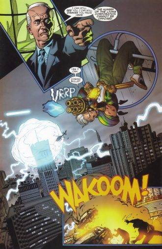 Con «Hello Cruel World» arranca esta miniserie en Agosto del 2000, donde descubrimos a este joven lleno de sorpresas y a su rival, ese Midas megalómano y desalmado, al que Noh-Varr le va a pasar el trapo con sus habilidades secretas (como los fluidos corporales nanoactivos). ‘Marvel Boy’ escapa tranquilo y mientras que de manera remota los kree le arreglan la nave, él pasea por Nueva York, dispuesto a arreglar a este mundo de mierda.