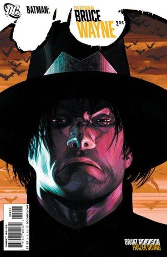 El capítulo 5, “Masquerade”, empieza a acerlerar como le gusta hacer siempre a Morrison. Centrado en una falsa década del ´70 (donde en realidad todo lo que vemos es de los ´40). Bruce está más canchero y se hace pasar por detective privado. Su diario personal (que comenzara a escribir en el capítulo 2) le salva la vida: la bala pega en él y deja un agujero en sus páginas. La minita de la historia: Marsha Lamarr (la actriz que protagonizó aquel film que quizás recuerden: “Black Glove”). Bruce es llevado por ella (y por sus faldas) a investigar el asesinato de los Wayne, y comienza a crearse el mito de que Thomas no murió. Investigan la Mansión (en aquel lugar donde será el asedio y donde Dick encontrará la Caja). Mientras, Hurt rosquea con Carter Nichols el sacrificio de una víctima inocente a Barbatos a cambio de guita para su investigación del viaje en el tiempo. ¿Qué busca? Más vida eterna. En la Mansión se prepara un culto satánico en medio del eclipse, al que Bruce asiste vestido con el disfraz de murciélago que su padre usara en aquella fiesta silveragesca de tantos años atrás. Todo se revela como una trampa, el sacrificio a Barbatos será él. Una vez más, Bruce zafa en el último minuto con la máquina del tiempo de Carter (un salto al vacío… o al fin de los tiempos). Mientras, en el presente, la capa y capucha que tiene la Liga empieza a emitir una radiación muy fuerte: Bruce se acerca. Alarmas, sirenas, descontrol: y Bruce llega, con la máquina del tiempo (la que le afanó a Hunter en el nº 2) y con un look techo. ¿WTF? El dibujo es de un descomunal Ryan Sook, que lo deja todo.