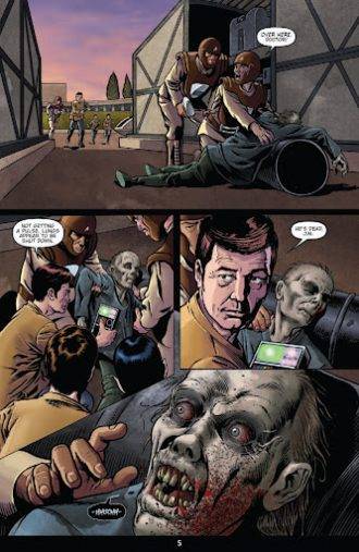 Así es como cada grupo de héroes deberá enfrentarse a la plaga y resolverla sin ninguna intervención o ayuda del resto de las franquicias. ¡MALISIMO! Sinceramente daba para mucho mas… Bah, ¿daba para mucho más? Como destacados, rescato los dos números de Star Trek, que me parecieron los más divertidos y con una vuelta de tuerca al final. Pudimos disfrutar de algo que nunca ocurrió en la franquicia: ver a Kirk, Spock y McCoy lidiar con zombies. Momento Kodak: McCoy diciendo su famosa frase a un zombie. “Está muerto, Jim” y para hacer honor a la franquicia, los que se convierten en zombies son los “Remeras Rojas”, que en Star Trek es una fija que terminan en un destino trágico.